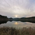 第一个弯弓,依稀能看到水库的轮廓,其实这不能算是水库,只是水库水位退下去以后一个大一点的池塘一样,涨水的时候进来很多鱼